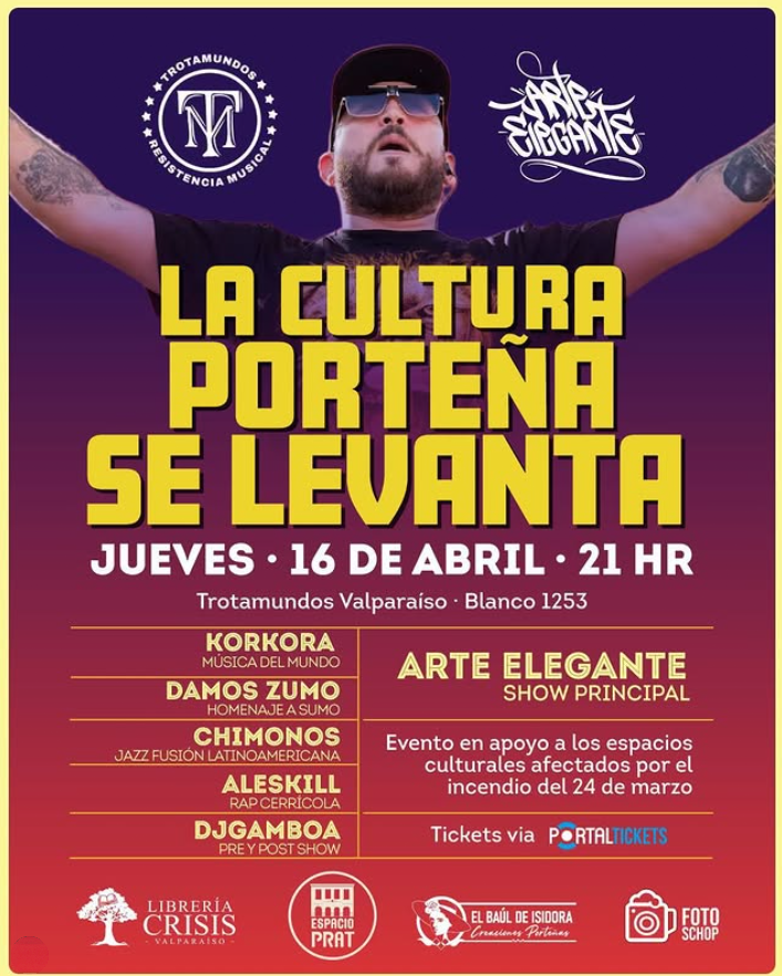 Porque la cultura en Valparaíso es fuerte y se levanta ante cualquier desafío el jueves 16 de abril en Trotamundos Valparaíso tendremos la oportunidad de apoyar a los proyectos creativos porteños afectados por el incendio del 24 de marzo en @espacio_prat